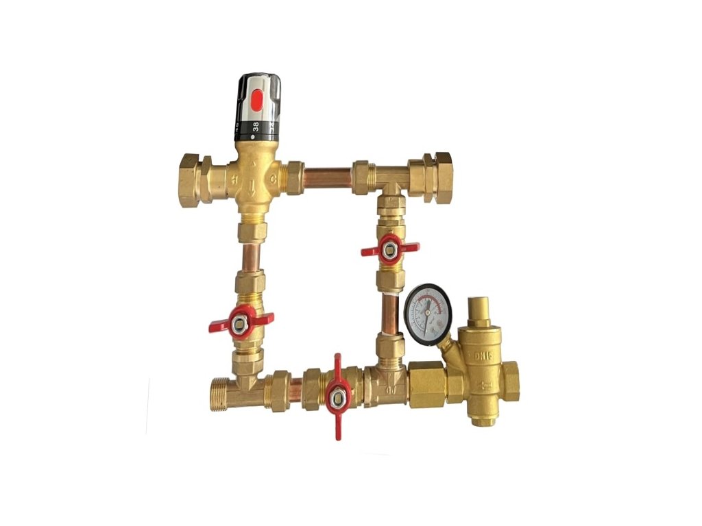 Rozdělovač tlakoý ventil a termostatický směšovací ventil 3/4'' 20℃ - 60℃ mosaz