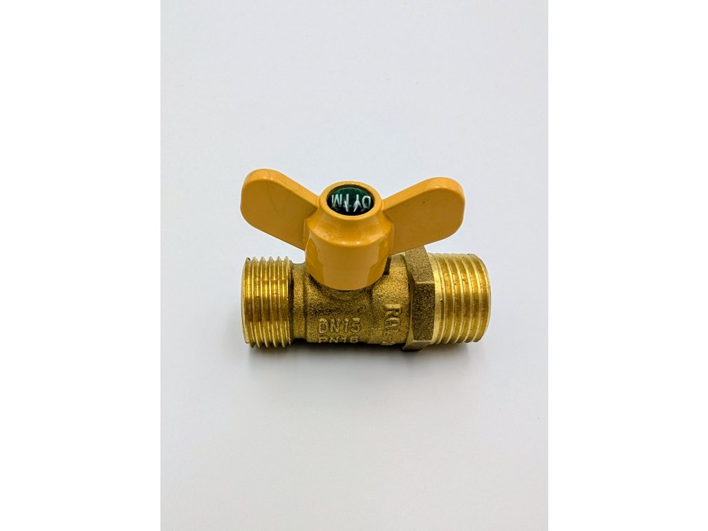 Ventil má na oboch stranách vonkajší závit 1/2" (G1/2"), takže sa jednoducho montuje medzi nadväzujúce armatúry so závitom 1/2". Motýľová páčka umožňuje rýchle ovládanie a dobrú kontrolu polohy otvorené/zatvorené.