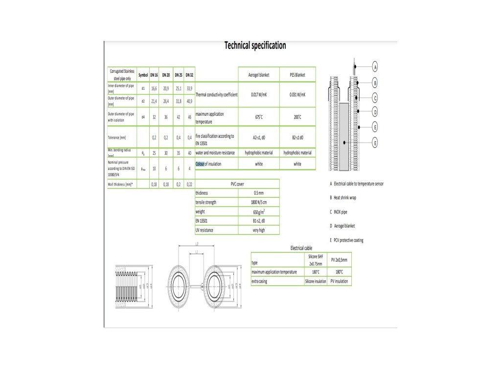 Solární trubka vlnovec dvojitý DN16 x1 m, AISI 316L 6,5mm izolace Aerogel